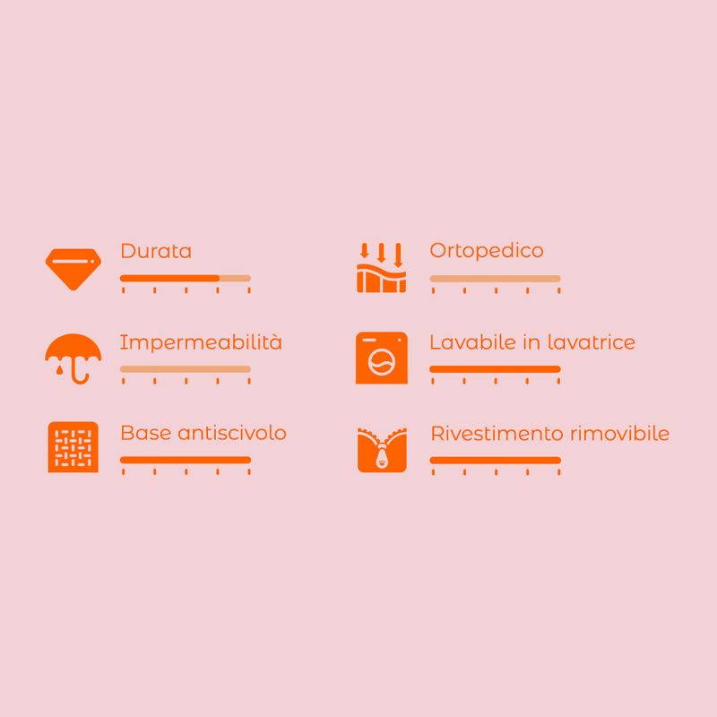 - rivestimento rimovibile, facile da pulire: con la spazzola per togliere i peli, o lavabile in lavatrice