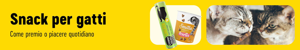 - Snack a ridotto apporto energetico: per i gatti che tendono al sovrappeso.