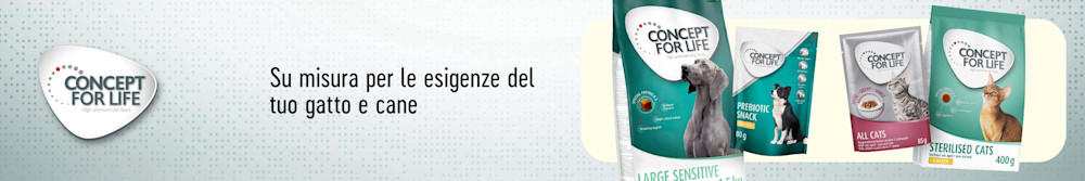Approfitta ora dello sconto del 10% su tutti i prodotti Concept for Life e Concept for Life Vet! Concept for Life è l'alimento perfetto per rispondere alle esigenze nutrizionali del tuo Pet: le ricette Concept for Life per cani e gatti sono infatti state sviluppate per offrire al tuo animale domestico i nutrienti di cui necessita in ogni fase della sua vita. La gamma di alimenti Concept for Life garantisce una dieta specifica per ogni razza di cane o gatto e per ogni età del tuo Pet.