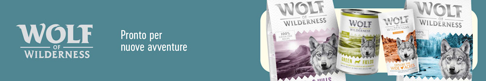 Gli alimenti Wolf of Wilderness sono stati pensati e creati sulla base della naturale alimentazione dei lupi nel loro habitat naturale. Ricette ricche di carne fresca e prive di cereali, contenenti ingredienti naturali che il lupo potrebbe trovare nel suo habitat, come frutti di bosco ed erbette selvatiche. Wolf of Wilderness fornisce alimenti bilanciati e idonei agli istinti del lupo.